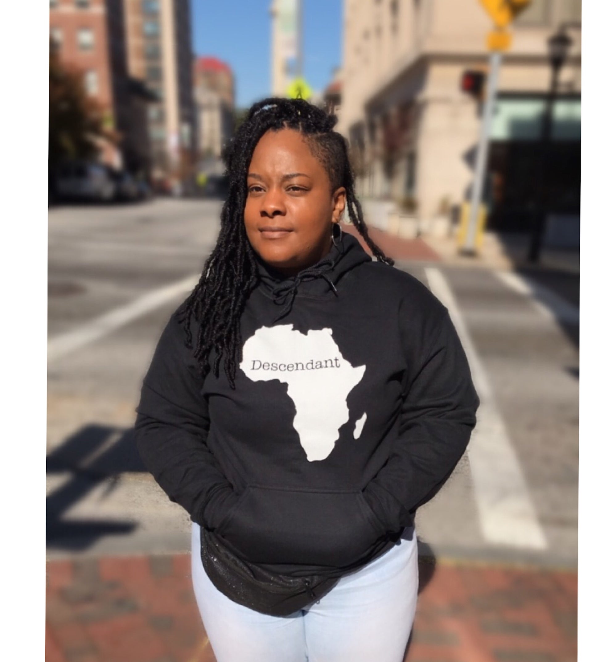 Showcase your roots with the Descendant Hoodie. Featuring the bold outline of Africa and the word "Descendant," this design honors ancestry and cultural pride. Crafted from premium materials, this hoodie is as comfortable as it is meaningful. Perfect for everyday wear or as a statement piece, it’s a tribute to heritage, history, and identity.