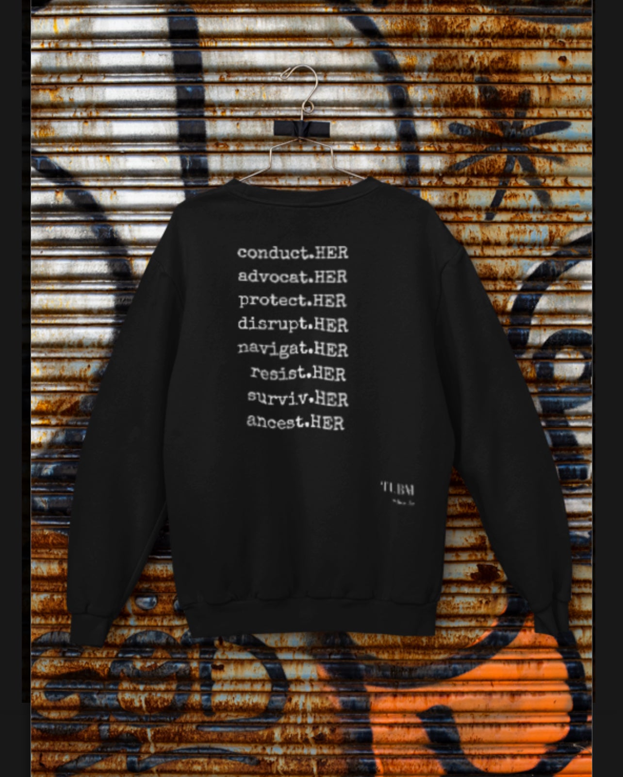 Featuring impactful words like 'conduct.HER,' 'advocat.HER,' and 'disrupt.HER,' this design celebrates Tubman’s achievements and inspires confidence. Crafted from high-quality fabric, this sweatshirt is both comfortable and durable, making it perfect for daily wear. Whether you're lounging at home or making moves, this piece is a stylish tribute to Black female empowerment.